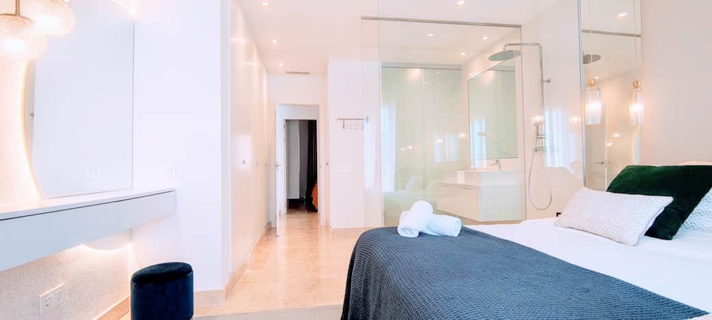 Head upstairs to your own private rooftop solarium — a spacious, open terrace with uninterrupted 360° views of the coastline, Gibraltar, and surrounding hills. With a lounge set and sun loungers, it’s the ideal place for sunbathing, reading, or stargazing ✨.